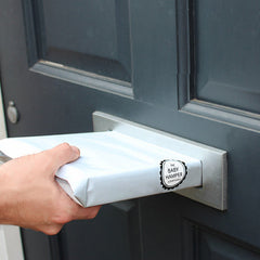 - The packaging fits through a standard letterbox so no disturbing new parents